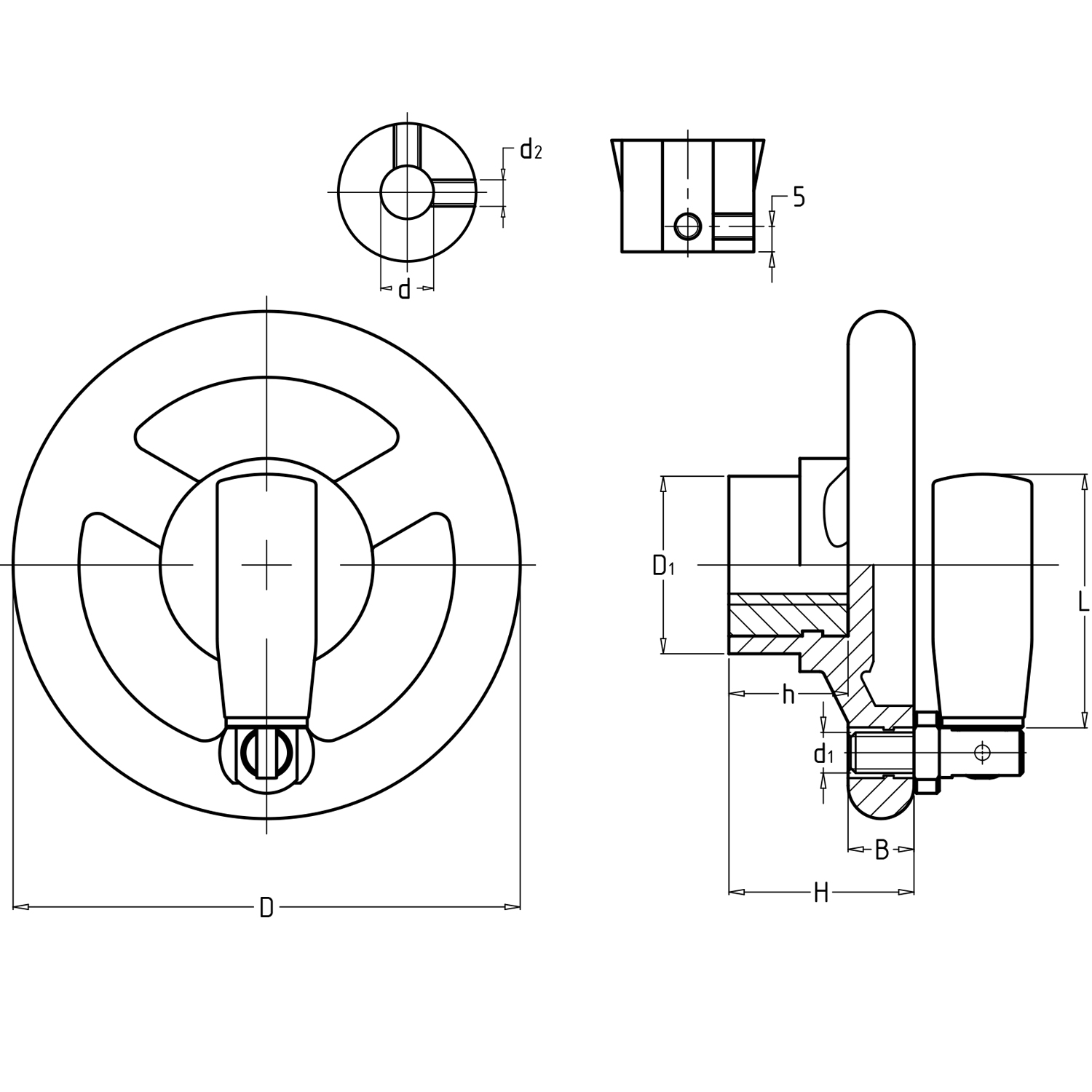HL.13445 螺釘鎖緊型 帶可折手柄三輻手輪